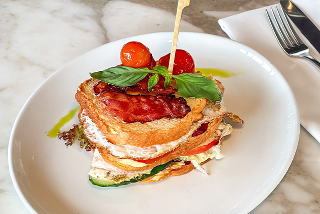 Brioche Toast, Avocado, pochierte Bio-Eier, Tomate, Sauce Hollandaise, Salsa