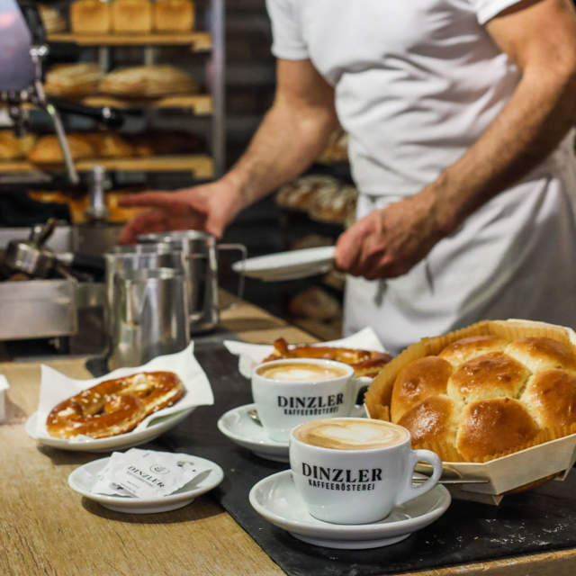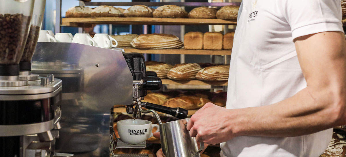 Dass es in seiner Brot- und Feinbäckerei DINZLER Kaffee geben soll, war für Inhaber Matthias Wolter schnell klar: “Für mich kam nie etwas anderes als DINZLER Kaffee infrage. Ich kenne die Rösterei schon lange. Der Geschmack war und ist immer sehr gut und der Markenauftritt von Anfang an authentisch”, begründet er die Kaffee-Wahl. Von Anfang an teilten die beiden Unternehmen den gleichen Anspruch an ihre Rohstoffe, die Verarbeitung und die Qualität ihrer Produkte. Ein Qualitätsbewusstsein, das verbindet. Bereits seit 2012 betreut die DINZLER Kaffeerösterei die renommierte Bäckerei Wolter mit dem DINZLER Rundum-Service für Bäckereien. Schnell hat sich aus einem Geschäftsverhältnis eine freundschaftliche Zusammenarbeit entwickelt. Nach den ersten gemeinsamen Gesprächen erarbeiteten die Kaffeeexperten vom Irschenberg ein maßgeschneidertes Kaffeekonzept für die Bäckerei.