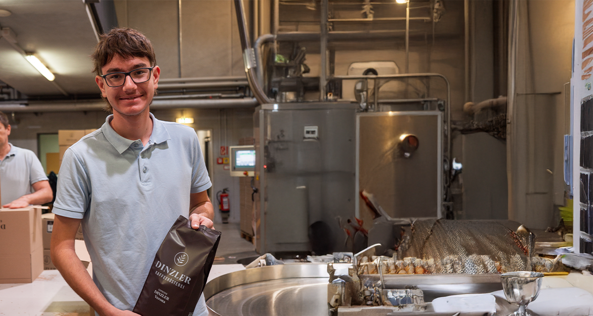Das Rohkaffeelager liegt direkt im Herzen von DINZLER – in der Rösterei. "Die Bohnen stammen aus Süd- und Mittelamerika, aus Afrika und aus Südostasien. Dabei bezieht DINZLER Rohkaffee auch von den Bauern direkt, achtet auf nachhaltigen Anbau und fairen Handel", erklärt Röstmeister Max Bauer. "Zeit ist bei der Rohkaffee-Lagerung ein entscheidender Faktor. Je frischer die Bohnen verarbeitet zu werden, umso besser der Geschmack"