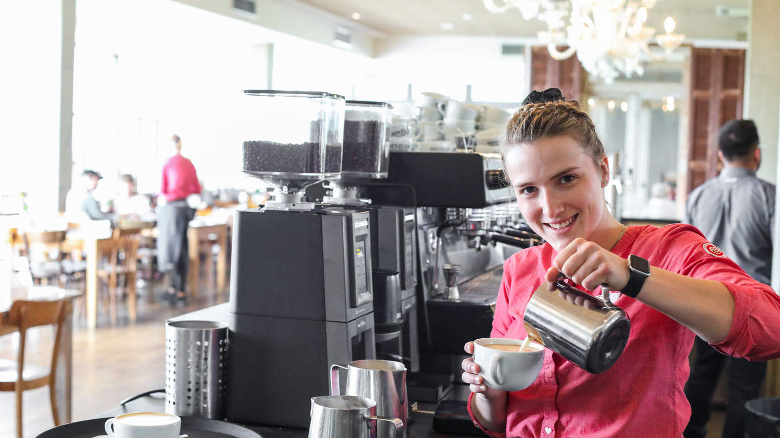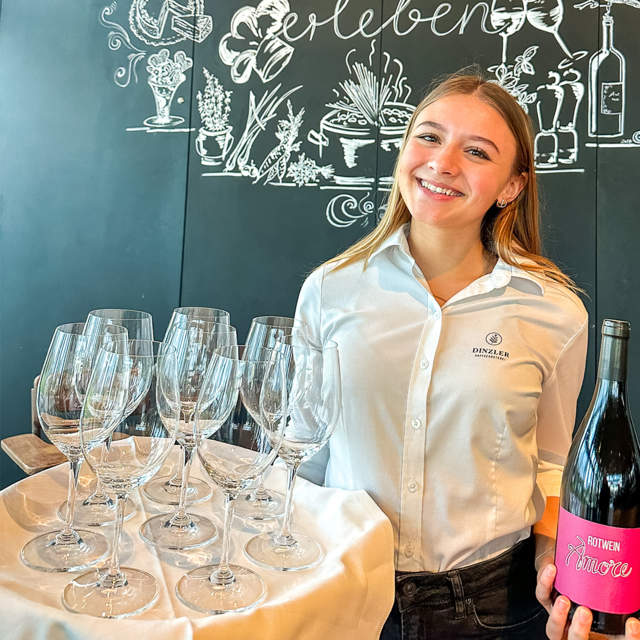 Zusätzlich zu Deiner Ausbildung hast Du bei uns die Möglichkeit, an verschiedenen internen und externen Schulungen und Weiterbildungen teilzunehmen. Dazu zählen Baristakurse in der DINZLER Kaffeeakademie, Ausbildungen zum Sommelier, Praktika in Partnerbetrieben, Teilnahme an Erasmus-Programmen und Fachexkursionen im In- und Ausland.