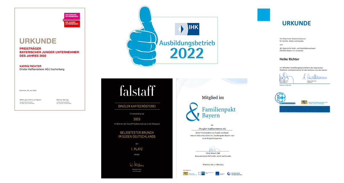In den letzten Jahren haben auch wir ein kleines Portfolio an Auszeichnungen für Gastronomie, Mirarbeiterbindung und auch Architektur aufgebaut. Doch von unserem Handeln und unserer Philosophie lassen wir uns mit oder ohne Auszeichnung und Siegel nicht abbringen. Das leben wir. Nachhaltigkeit ist für uns kein Trend, sondern in unserem Verhalten fest verankert. Neben unserem „Direkt gehandelt“-Ansatz mit den Kaffeebauern im Ursprungsland, setzen wir uns mit verschiedenen Projekten für sozial schwache Menschen ein. Freude an der Arbeit lässt das Werk trefflich geraten. Dieses Zitat stammt nicht von uns, sondern von Aristoteles. Doch spiegelt es unseren Ansatz wieder. Wir wollen unsere Mitarbeiter integrieren (20 verschiedene Nationen), ausbilden (8 Ausbildungsberufe – 30 Auszubildende) und entwickeln uns gemeinsam weiter.