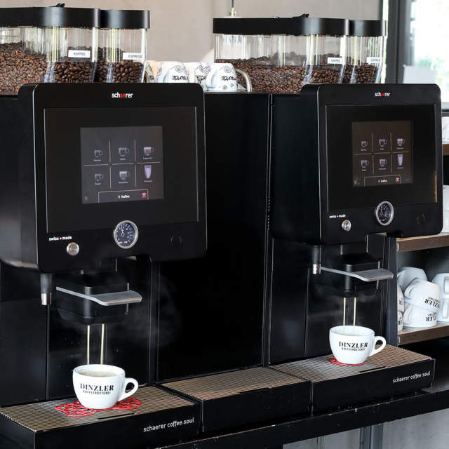 Im Bereich professionelle Vollautomaten für Gastronomie und Hotellerie arbeitet DINZLER seit Jahrzehnten mit dem Schweizer Premium-Hersteller Schaerer zusammen. Die Zusammenarbeit basiert auf gemeinsamen Werten sowie einem identischen Qualitätsbewusstsein. Schaerer Kaffeevollautomaten garantieren feinsten Kaffeegenuss auf Knopfdurck. Eine große Auswahl an Top-Produkten ermöglicht eine individuelle Lösung, zugeschnitten auf die Bedürfnisse Ihrer Gastronomie. Bei der Wahl Ihres Kaffeevollautomaten beraten wir Sie umfangreich und stehen Ihnen bei der Wartung und Reparatur als verlässlicher Servicepartner zur Seite.