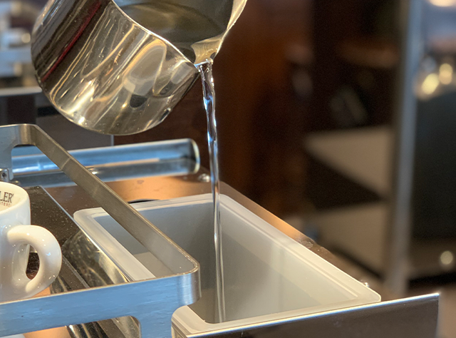 5. Schritt 3 mit klarem Wasser wiederholen um jegliche Rückstände der Reinigungsflüssigkeit aus dem Dampfrohr zu entfernen.