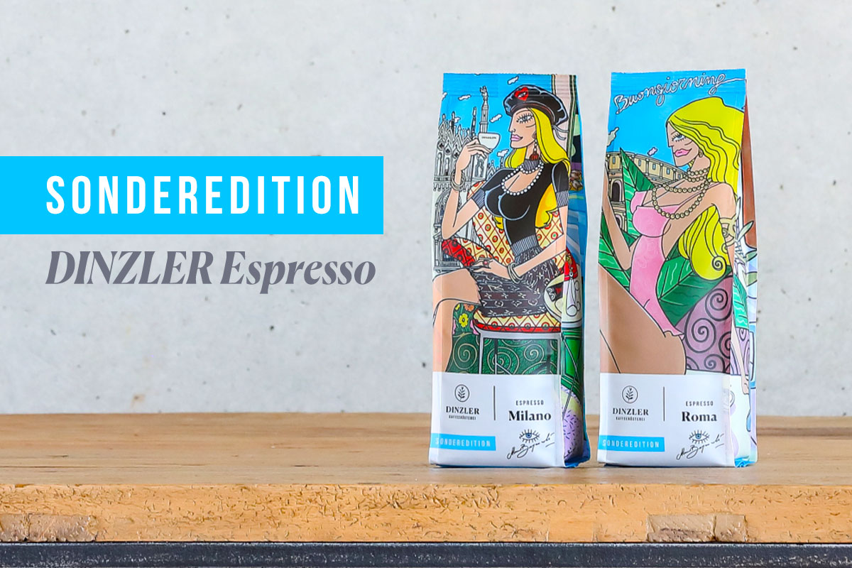 Als gebürtiger Italiener bezeichnet sich Mauro Bergonzoli selbstverständlich als leidenschaftlicher Espressotrinker. Kaffee bedeutet für ihn: Kultur, Geschmack, sich Zeit nehmen, um den Moment zu genießen. Er schätzt es, die Energie und Stimulation, die der köstliche Espresso schenkt, in produktive und erfüllende Arbeit umzuwandeln. Höchste Zeit also für die DINZLER Espresso-Sondereditionen: Der DINZLER Espresso Roma Sonderedition Mauro Bergonzoli und DINZLER Espresso Milano Sonderedition Mauro Bergonzoli. Dafür hat der Künstler zwei Verpackungen in seinem typisch lebendigen Stil designt.