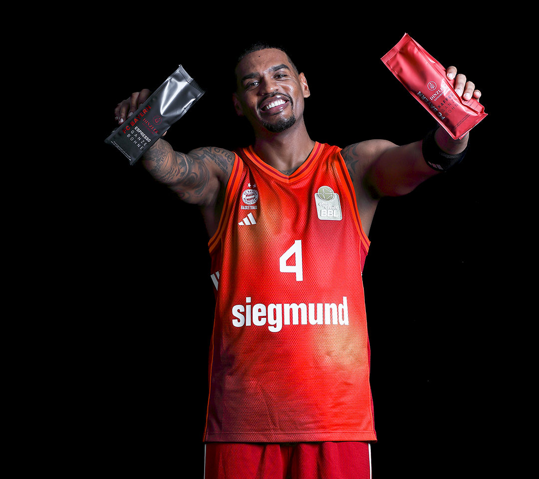 Als weiteres Highlight verlosen wir an zwei weitere glückliche Gewinner je ein original signiertes FC Bayern Basketball-Trikot zusammen mit einer Packung FC Bayern München Kaffee- und Espressobohnen von DINZLER – ein besonderes Fan- und Genuss-Set für zu Hause.