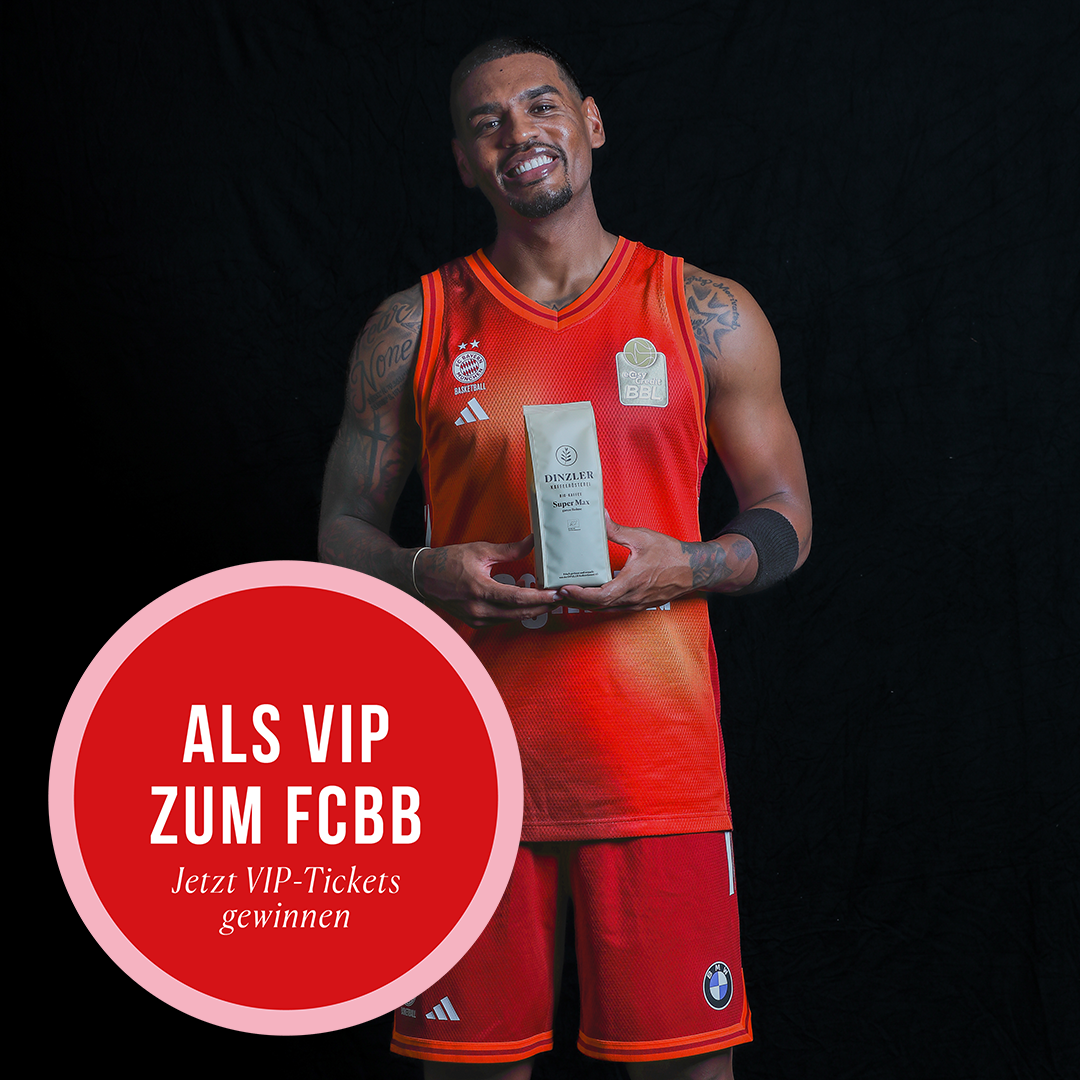 Füllen Sie noch bis zum 18.12.2025, 23:59 Uhr, das Gewinnspielformular aus und nehmen Sie so automatisch an der Verlosung teil. Freuen Sie sich mit etwas Glück über zwei VIP-Tickets für das BBL-Spiel des FC Bayern München Basketball gegen ratiopharm Ulm am 01.02.2026 sowie über einen exklusiven Barista-Kurs bei DINZLER im VIP-Bereich des BMW Parks oder über ein original signiertes FC Bayern Basketball-Trikot zusammen mit einer Packung FC Bayern München Kaffee- und Espressobohnen. Ausgelost wird am 19.12.2025. Die glücklichen Gewinner werden per E-Mail informiert. Wir wünschen viel Glück beim Gewinnspiel!