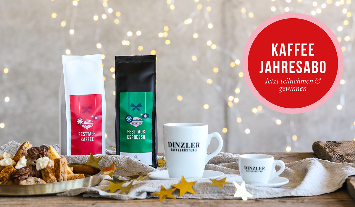 Damit das neue Jahr genussvoll beginnt und Sie jederzeit mit gutem Kaffee versorgt sind, halten wir heute ein besonderes Weihnachtsgeschenk für Sie bereit: In unserem 24. Türchen verlosen wir 2 × 1 Jahresabo für DINZLER Kaffee oder Espresso.