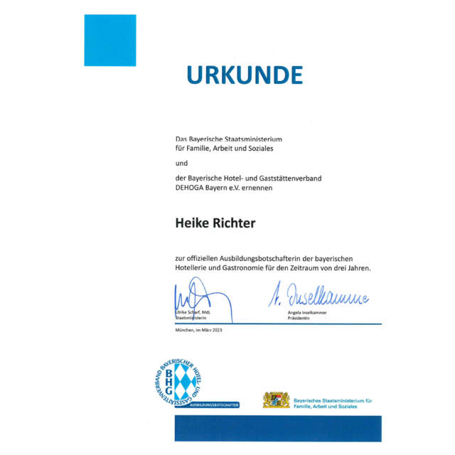 In unserem Betrieb in Irschenberg bilden wir ab 2025 zur/zum Fachfrau/mann für Restaurants und Veranstaltungsgastronomie aus.