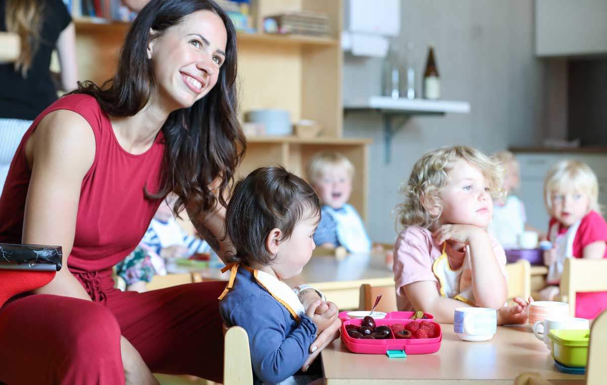 Seit die DINZLER Kaffeerösterei 2011 ihr Zuhause am Irschenberg gefunden hat, beherbergt das Gebäude auch die hauseigene Kinderkrippe "Die kleine Kaffeebohne". Sie bietet in einer Gruppe Platz für 12 Krippenkinder sowohl für Mitarbeiter-Kinder als auch externe Kinder. Für unser sechs-köpfiges Team steht dabei der Leitsatz "In Liebe leben, mit Freude entdecken, mit Mut entwickeln, vielfältig ausdrücken, mit Dank zurückblicken" im Mittelpunkt.